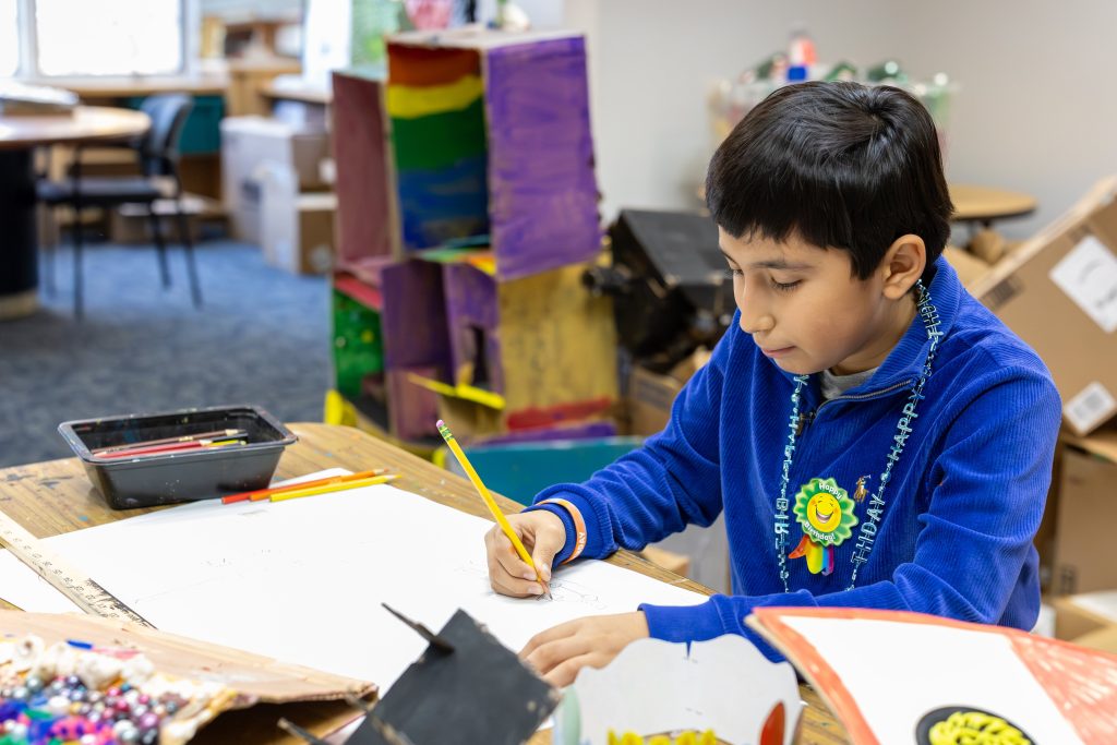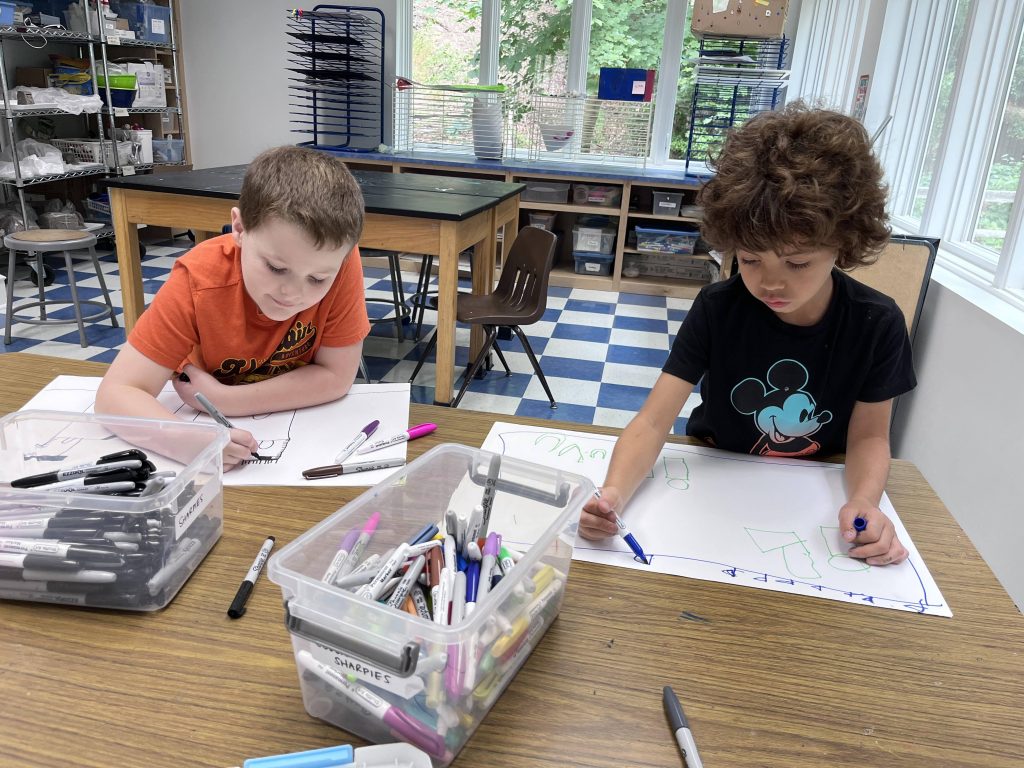 Drawing lessons that employ the basic shapes as building blocks begin at the pre-K level, as does exposure to famous paintings and other art forms from various time periods and cultures. Even at this early age, young artists are learning how to observe, envision, innovate, and reflect while they draw and paint. A variety of age-appropriate materials are presented, along with activities designed to encourage open-ended exploration. Small motor skills that are targeted in OT are also practiced. The goal is to provide a safe and fun environment where children begin to experience the joy of mark-making and plenty of “I did it!” moments.