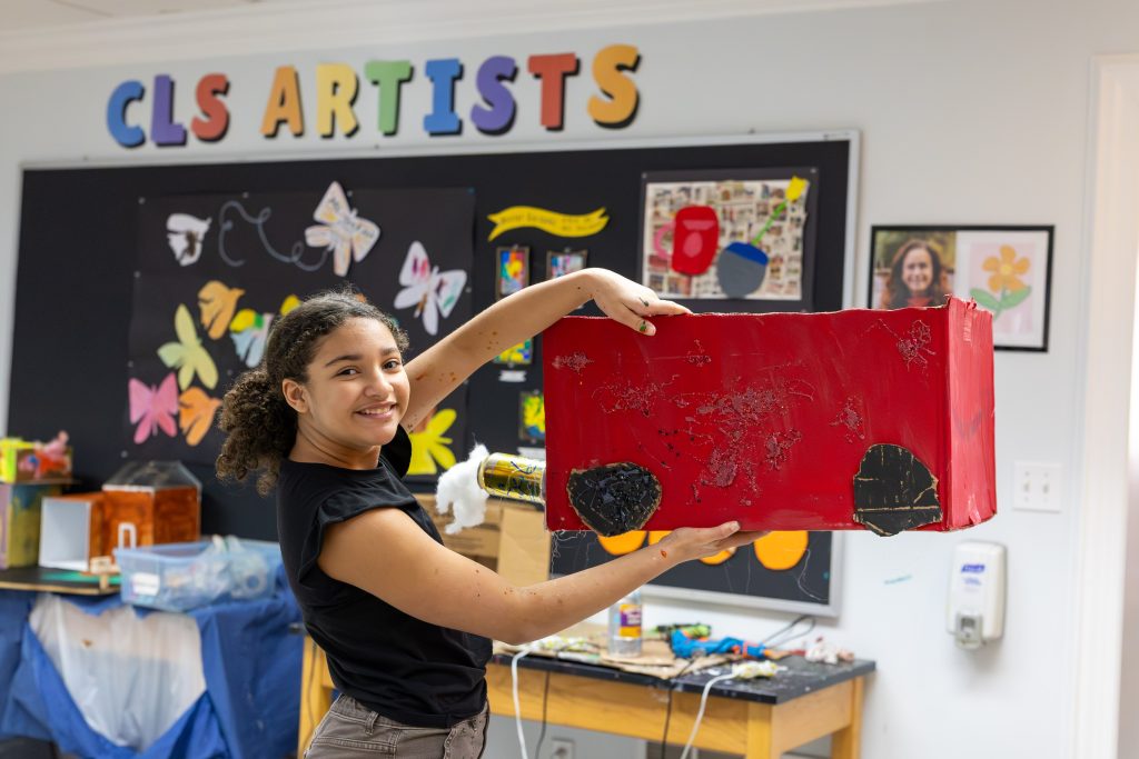 The Visual Arts Program at Centreville Layton exposes students to the language of the visual arts, supporting creative exploration and self-expression in a non-judgmental environment. The curriculum introduces the students to various age and developmentally appropriate materials and techniques for both 2-D and 3-D projects, including drawing, painting, ceramic arts, sculpture, printmaking, graphic arts, textiles, jewelry, and media arts. While these lessons are designed to meet the National Visual Arts Standards, it is the strengths, interests, and readiness of the individual students that guide the art room activities on a daily basis.