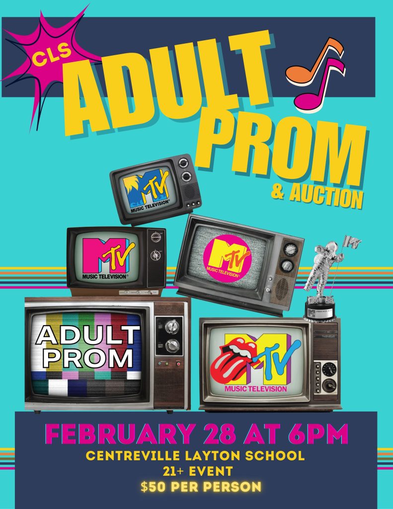 We’re turning back the clock and turning up the volume—Adult Prom is coming back to Centreville Layton School, and this year’s theme is MTV Generation! Get ready for an unforgettable night filled with your favorite throwback hits, bold fashion, and all the nostalgic glam.